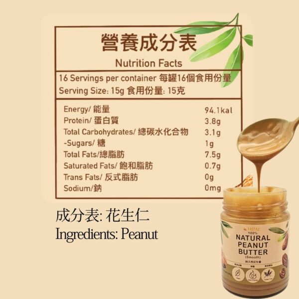 純天然配方:100%精選花生,無添加糖、無鹽、無棕櫚油
